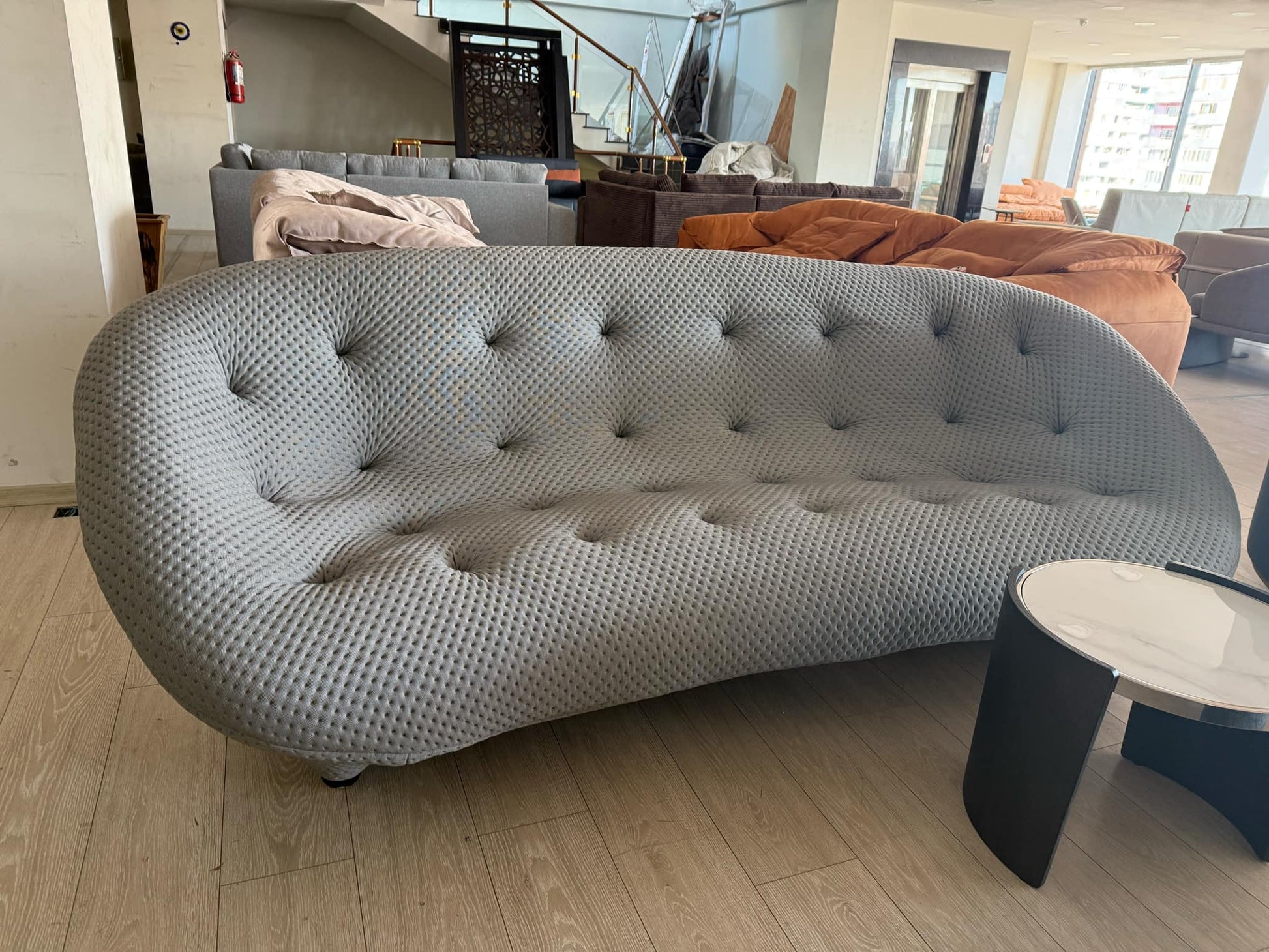 "ploum"-ის დივანი ერთ-ერთი ყველაზე პოპულარული დიზაინია .               მისი გადაჭიმული ზედაპირი  ჩესტერის ჩანართებით  მეტ ხიბლს               სძენს მოდელს , დივანის ოდნავ დახურული კუთხე კი  ხელს                         უწყობს მასზე მოთავსებისას განიცადოთ უფრო მეტი კომფორტი .