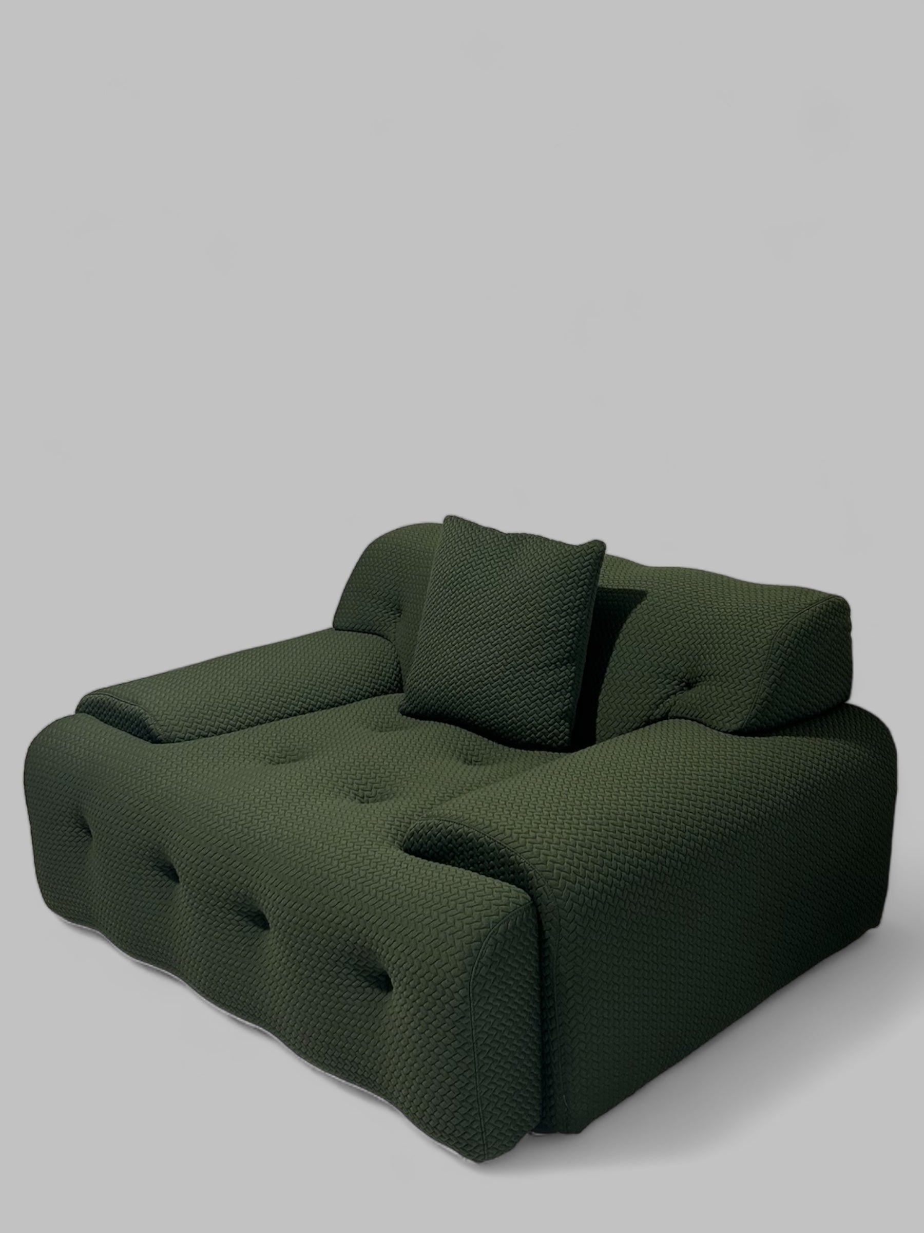 მინიმალისტური,მსუბუქი,დახვეწილი დიზაინის დივანი ,რომელიც თანამედროვებას კარგად ერწყმება.მთავარი კი მისი სამგანზომილებიანი ქსოვილია,რომელიც გამოირჩევა სირბილით და მდგრადობით. ქსოვილს ასევე გააჩნია ჰაერის მაღალი გამტარიანობა.მისი მომრგვალებული, ფართო მკლავები და საზურგე კომფორტის გარანტია.გარეგნული დიზაინი კი დეკორატიული ეფექტებით თქვენს სივრცეს უფრო მდიდრულს გახდის.