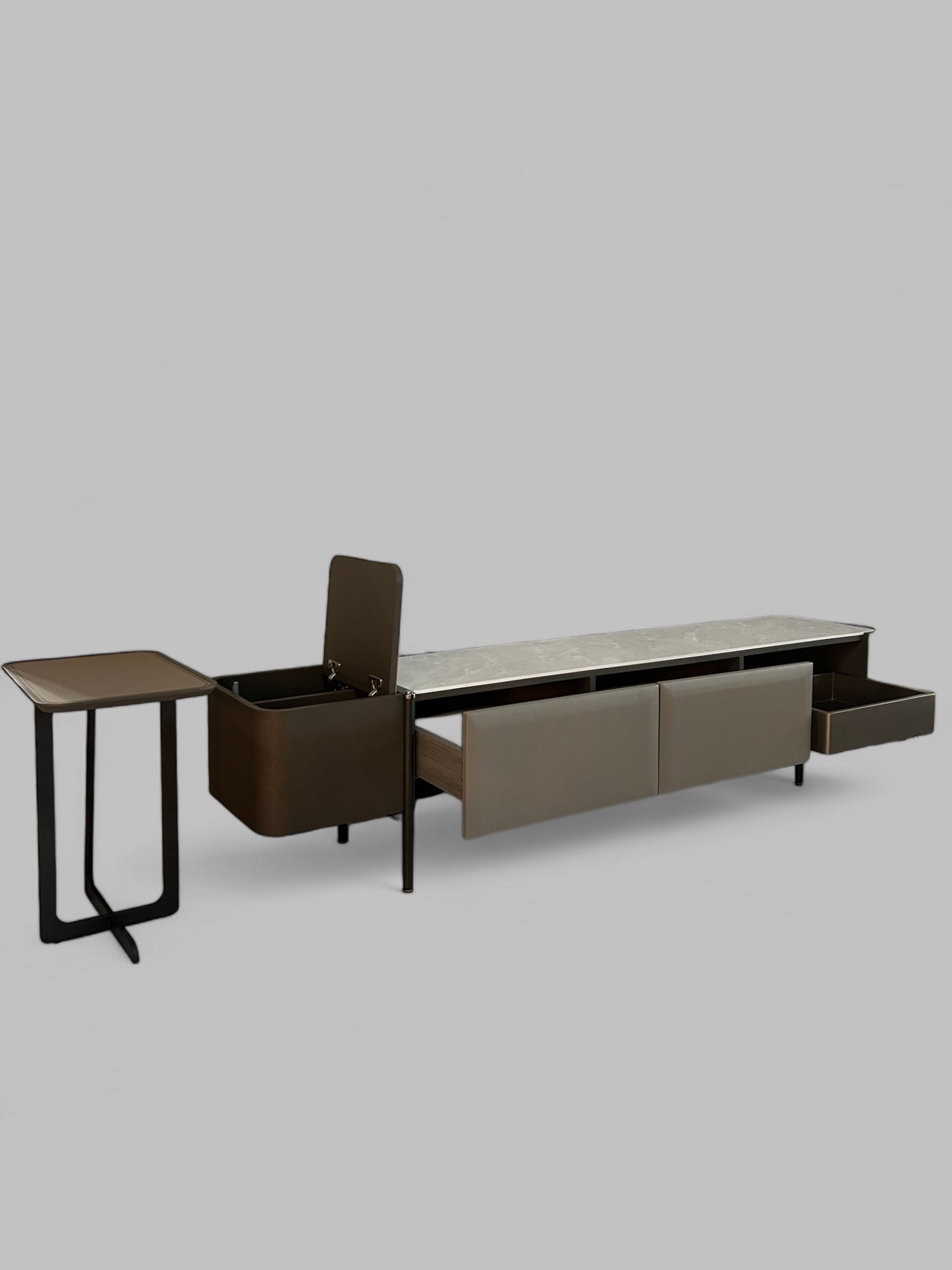✅ პატრა მაგიდა ტყავის ზედაპირით