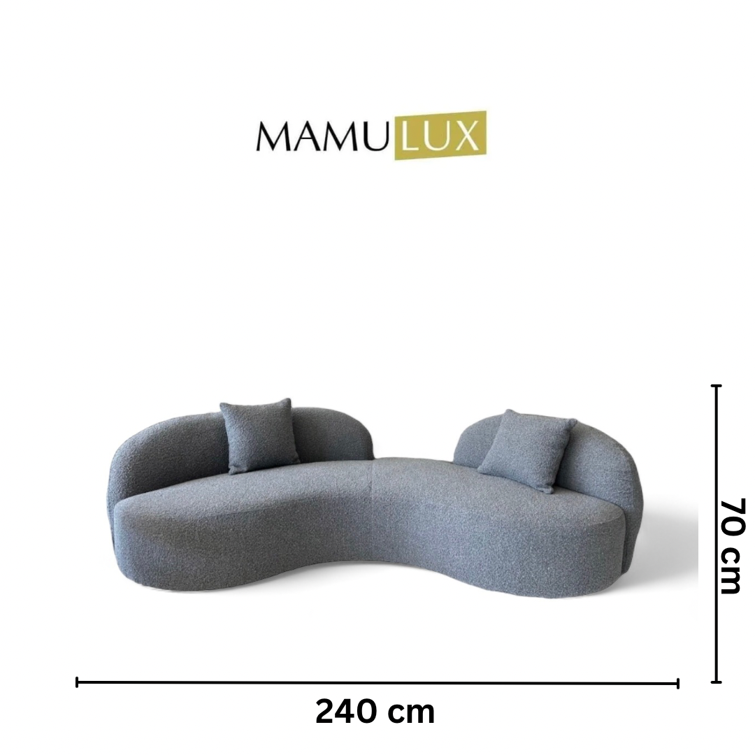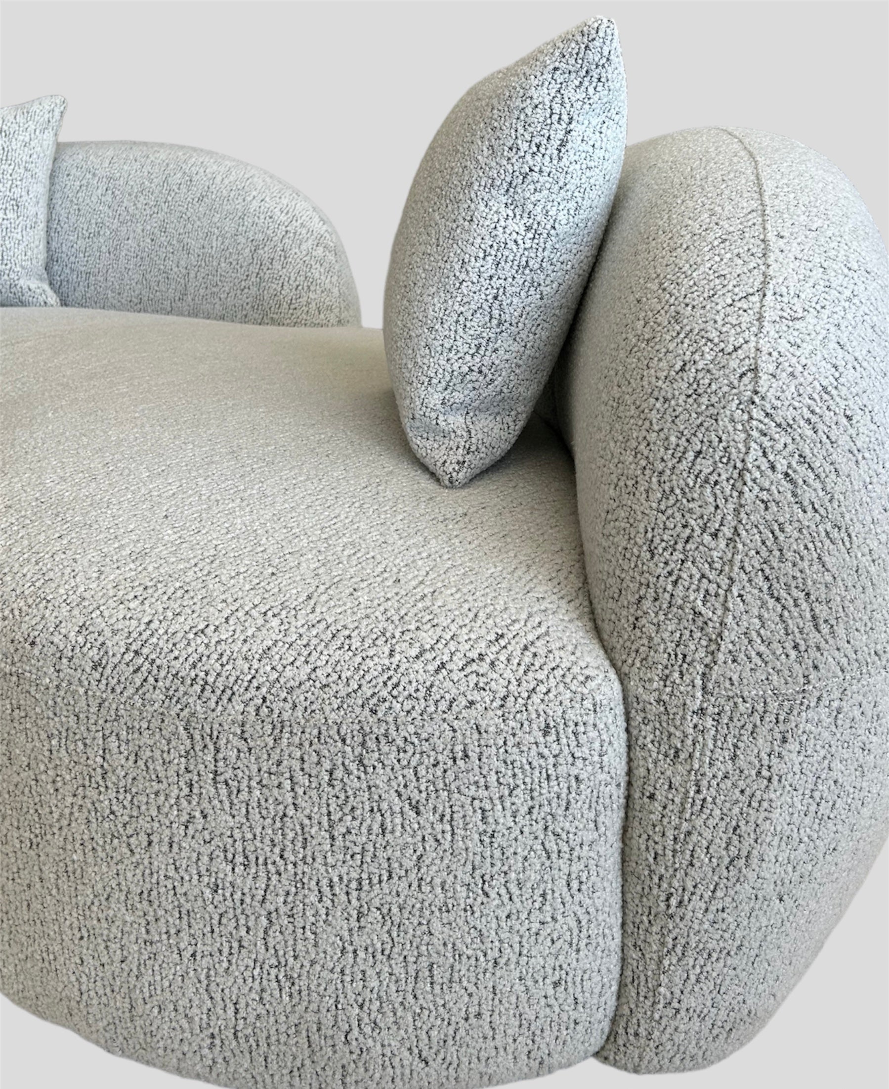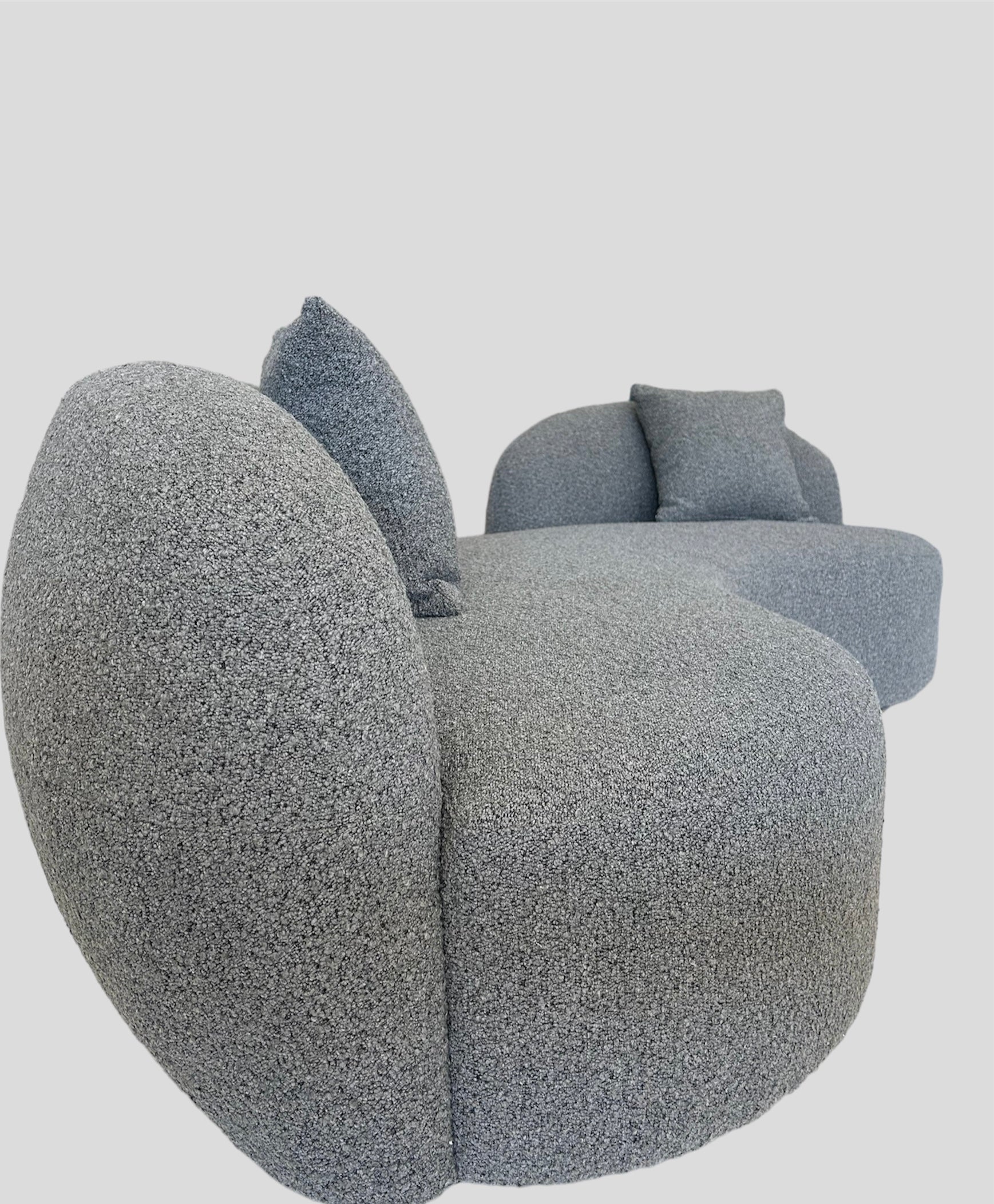 დივანი, რომელიც თქვენს მისაღებს ელეგანტურ და თანამედროვე ელფერს შესძენს .მისი მომრგვალებული დიზაინი საშუალებას გვაძლევს განვათავსოთ ნებისმიერი ინტერიერის მქონე სივრცეში.იგი დამზადებულია ნატურალური ხისგან, მის უცვლელ ფორმებს მრავალი წლის მანძილზე უზრუნველყოფს ლატექსის სამმაგი ფენა, ხოლო რაც შეეხება ზედაპირს ის დაფარულია ბუკლეს ქსოვილით . ფერების მრავალფერონება არჩევის პროცესს გაგიადვილებთ .