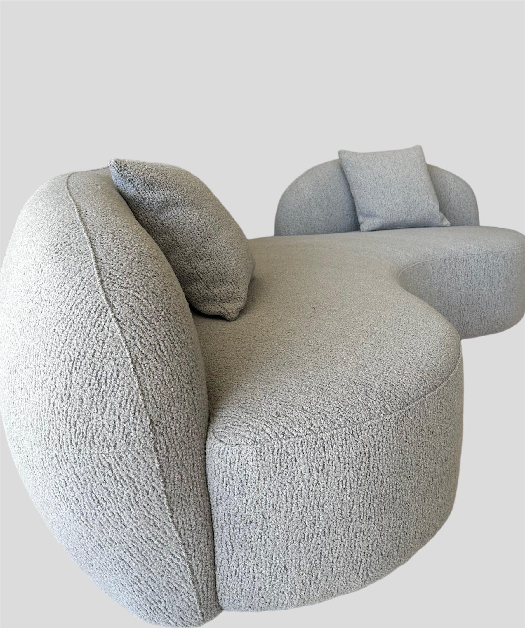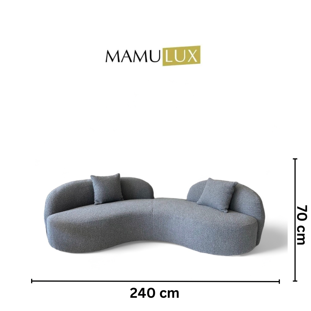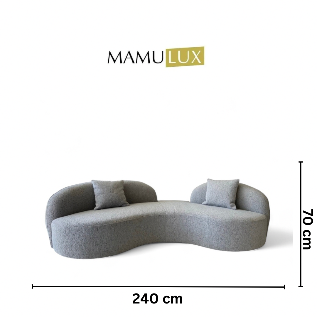 დივანი, რომელიც თქვენს მისაღებს ელეგანტურ და თანამედროვე ელფერს შესძენს .მისი მომრგვალებული დიზაინი საშუალებას გვაძლევს განვათავსოთ ნებისმიერი ინტერიერის მქონე სივრცეში.იგი დამზადებულია ნატურალური ხისგან, მის უცვლელ ფორმებს მრავალი წლის მანძილზე უზრუნველყოფს ლატექსის სამმაგი ფენა, ხოლო რაც შეეხება ზედაპირს ის დაფარულია ბუკლეს ქსოვილით . ფერების მრავალფერონება არჩევის პროცესს გაგიადვილებთ .